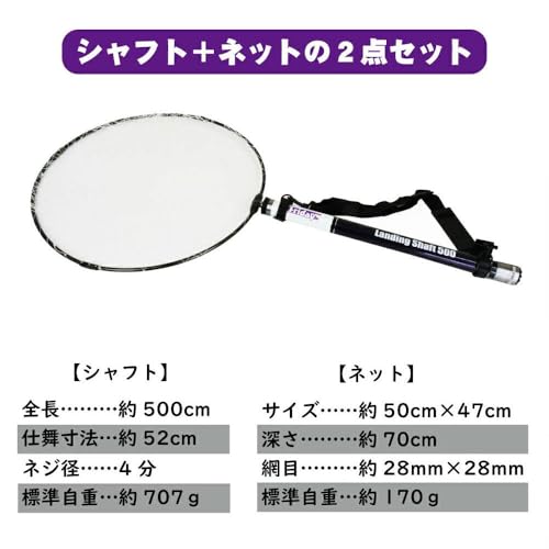 8位 | ピュアテック BLUE LARCAL ランディングネット 2点セット 5.5m | 64cm大口径とラバーコーティングで青物にも対応 パッド付きショルダーベルトで長時間持ち歩きも快適 |