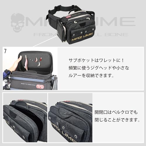 アジングやメバリングなどのライトゲームに最適化された、コンパクト設計のヒップバッグです。特殊な開口部システムにより、バッグ内部の視認性が抜群で、小さなジグヘッドやワームも素早く見つけることができます。
