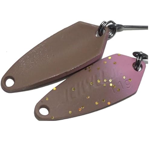 他のスプーンに反応が無い時の最後の切り札として重宝しています。1.1gの飛距離が出て使いやすい重さがおすすめで、茶色とオリーブの地味系カラーが特によく効きます。北関東カラーはその中でも別格で、地元アングラーの間では「幻のカラー」と呼ばれているほどです。