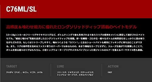 入門機では物足りなくなった中級者や、最初からワンランク上の性能が欲しい方におすすめです。ベイトの利点であるキャスト・操作精度を十分に活かせる7.6ftのレングスも魅力的です。
