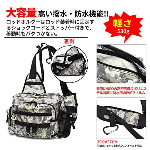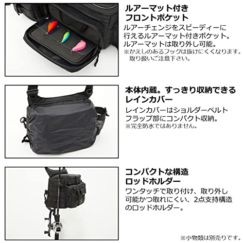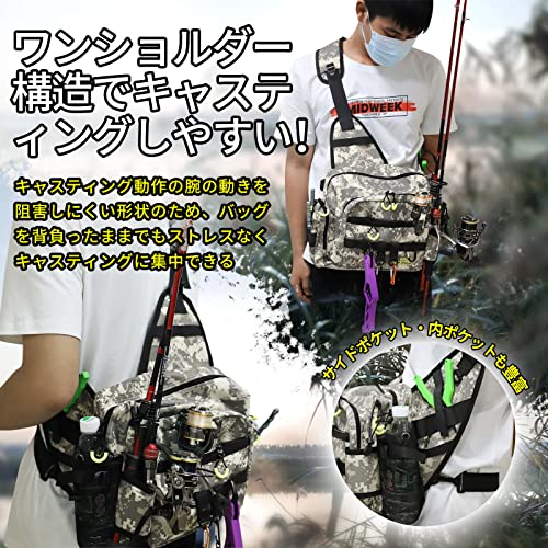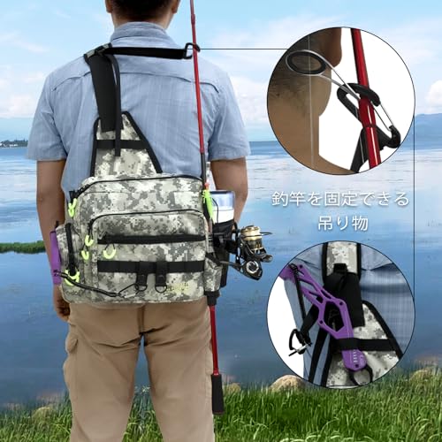 釣り専用のショルダーバッグには、釣り人が欲しがる機能がしっかり装備されています。