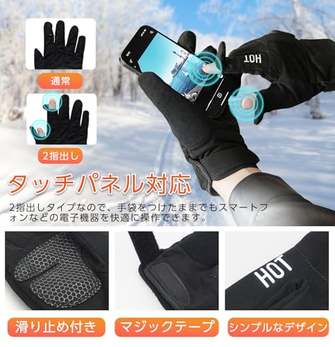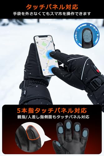 5本指すべてがタッチパネル対応で、魚探のスマホアプリ操作も手袋を着けたまま可能です。掌のPUレザー素材は滑り止め効果が高く、濡れたロッドでもしっかりとグリップできる点が釣り用途として優秀です。