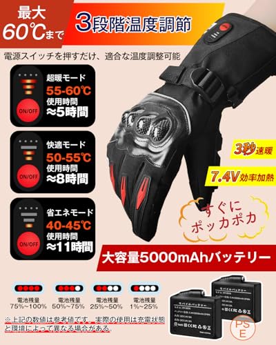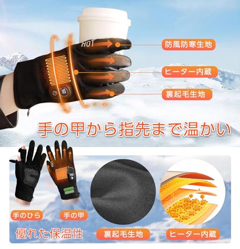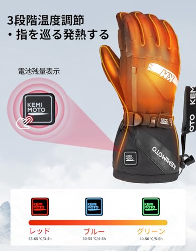 KEMIMOTO電熱グローブ|手の甲と掌独立発熱で28時間使用可能