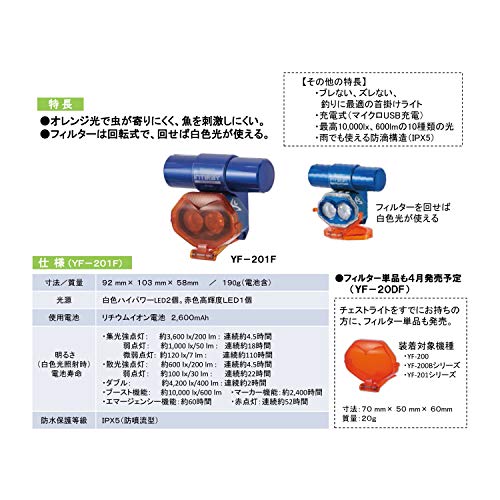 ハピソン 充電式オレンジフィルターチェストライト YF-201F|魚を警戒させないオレンジフィルター